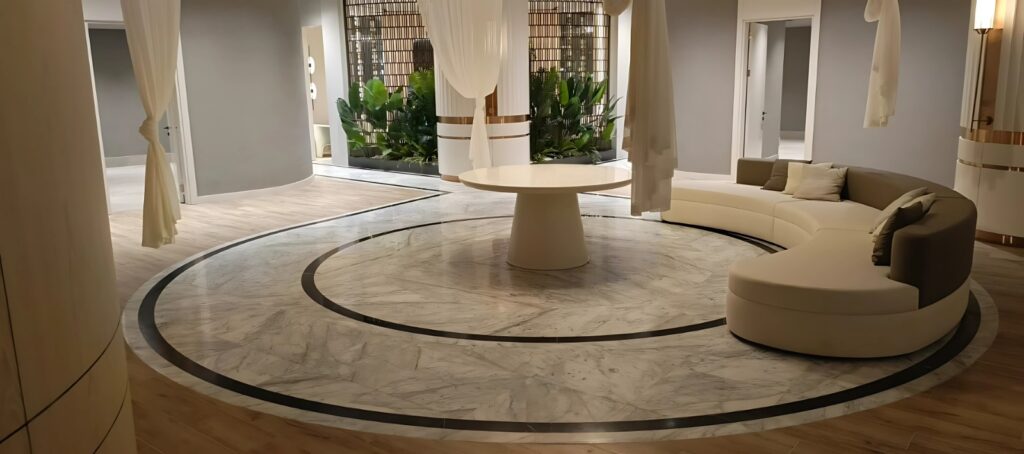 Spa ve wellness gibi ıslak zeminlerde farklı, yoğun trafiğe açık alanlarda ise daha dayanıklı mermerlerin tercih edildiğini belirten Uysal, uygulama stratejisini şu sözlerle özetledi: